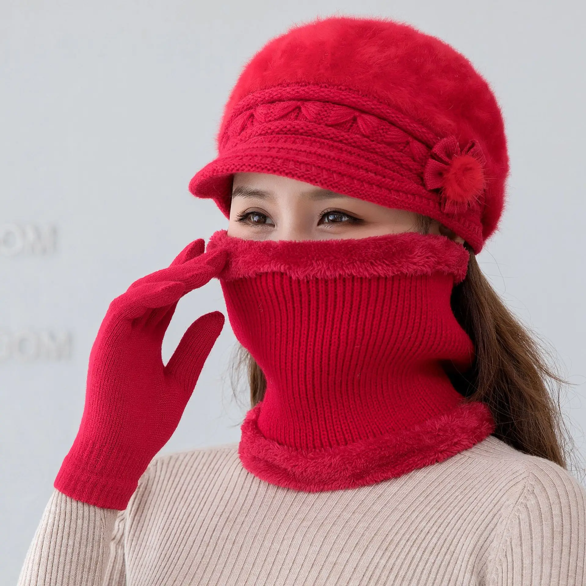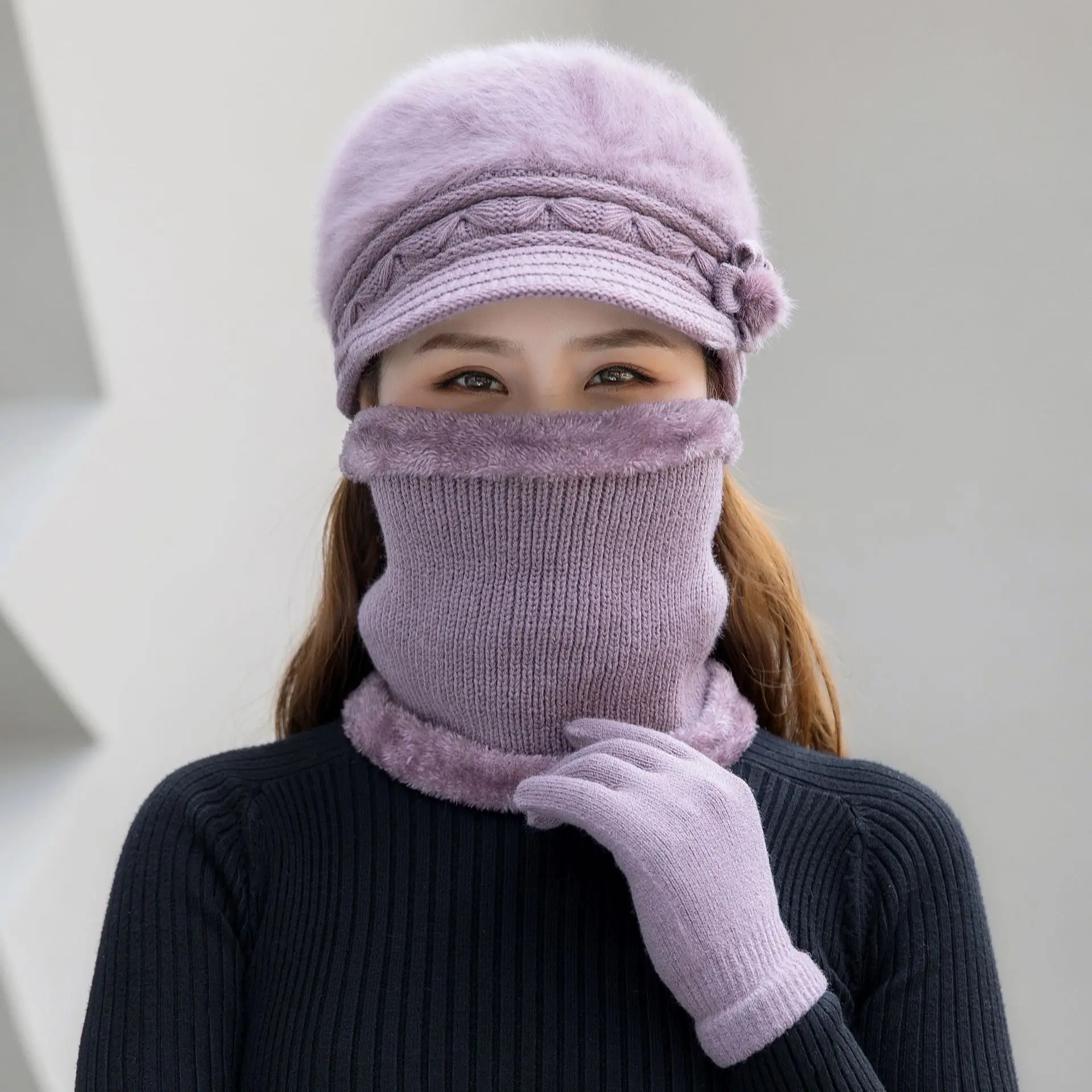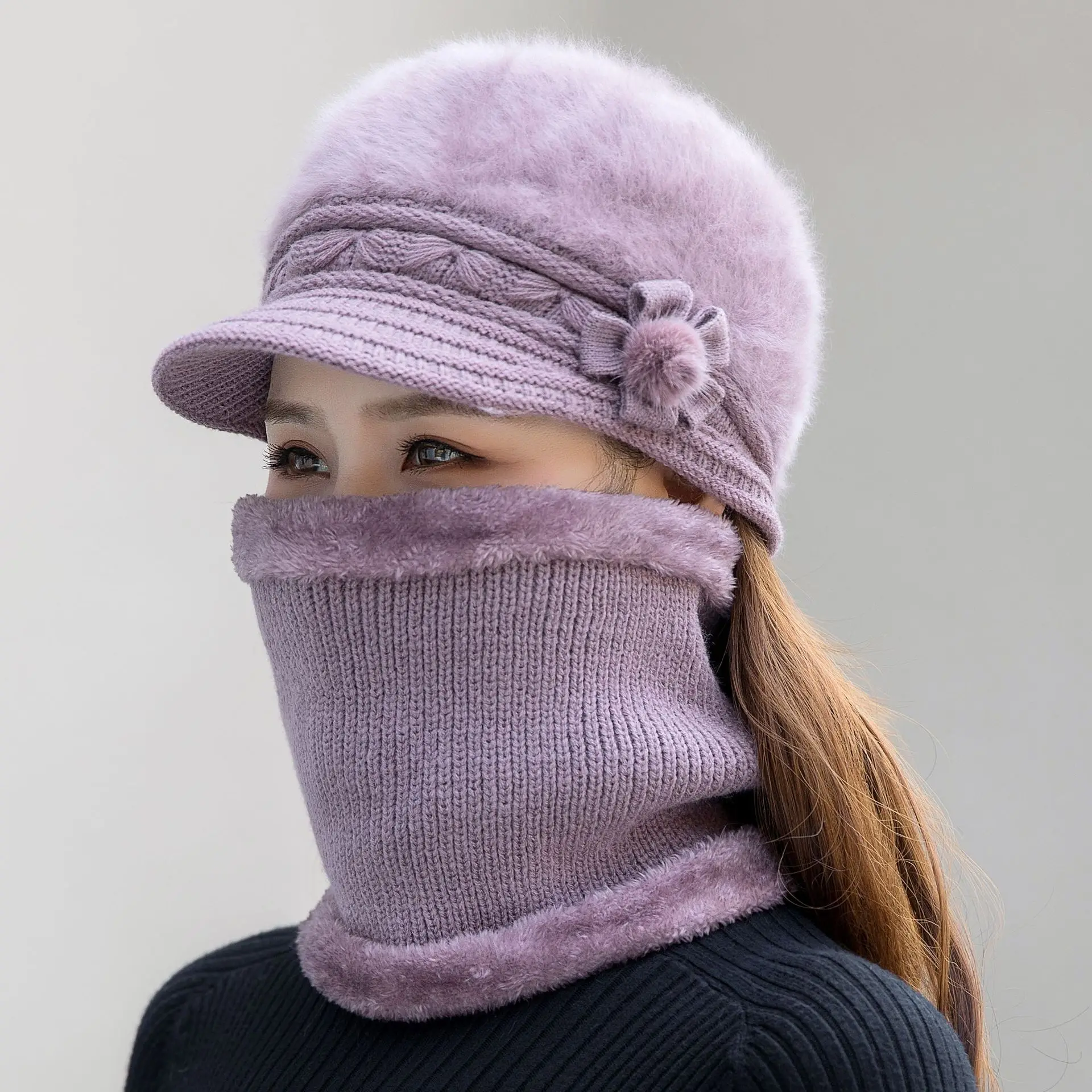Color: Yellow - New Women Winter Hat Keep Warm Cap Add Fur Lined Hat & Scarf Warm Set Fashion Hat F F640-12000051193107989