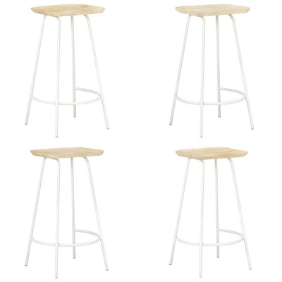 This 4-piece bar stool set combines style and practicality, making it a great choice for any home bar or dining area. With a sleek design that focuses on both comfort and looks, these stools have a solid mango wood seat paired with a crisp white powder-coated iron frame, perfect for modern and industrial decor. The understated charm of the bleached wood finish contrasting with the smooth metal texture enhances the overall visual vibe, creating a warm and inviting space in your kitchen or dining room.